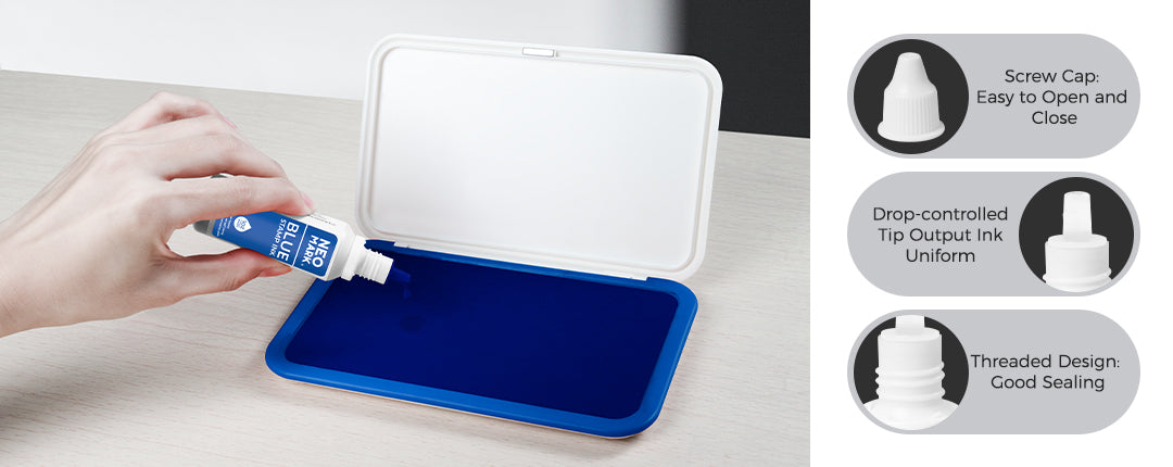 The spill-proof design makes it easy to use, while the quick-drying ink ensures clean results every time. Choose NEO MARK for high-quality, eco-friendly stamping.